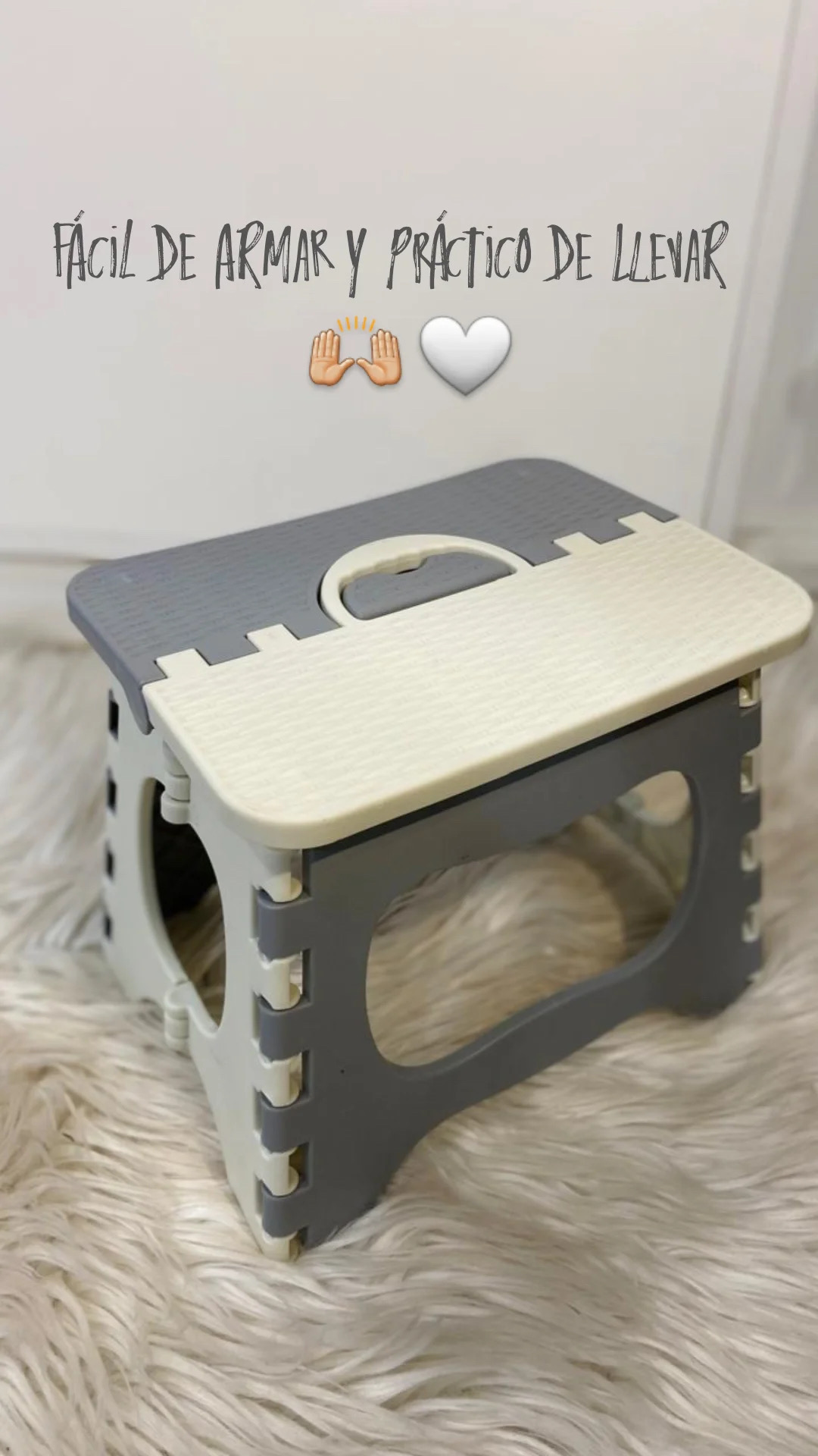 Banquito plegable, color gris con blanco, ideal hasta los 6 anos