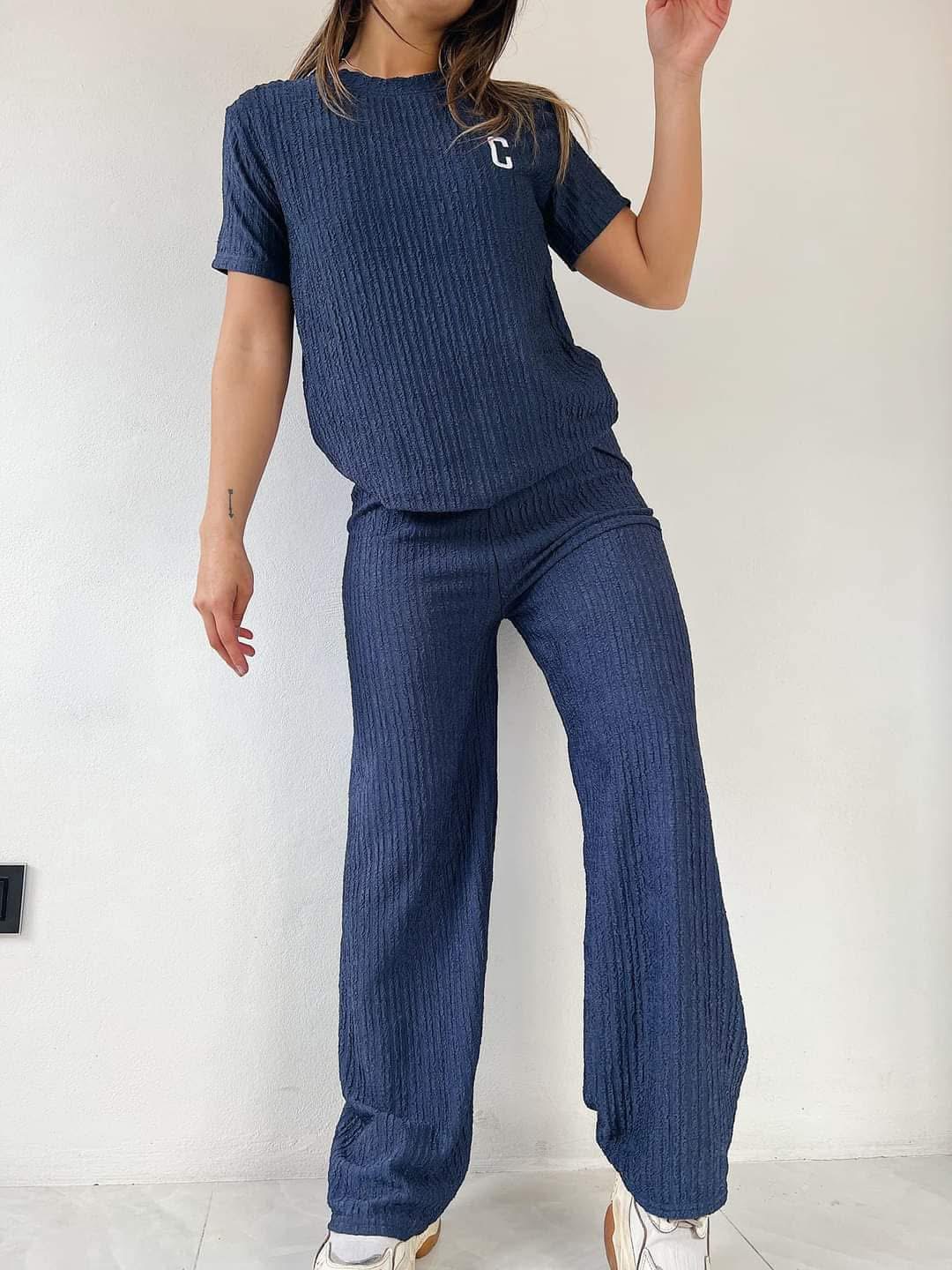 Con remera y pantalón, tela importada. ¡Hermoso!